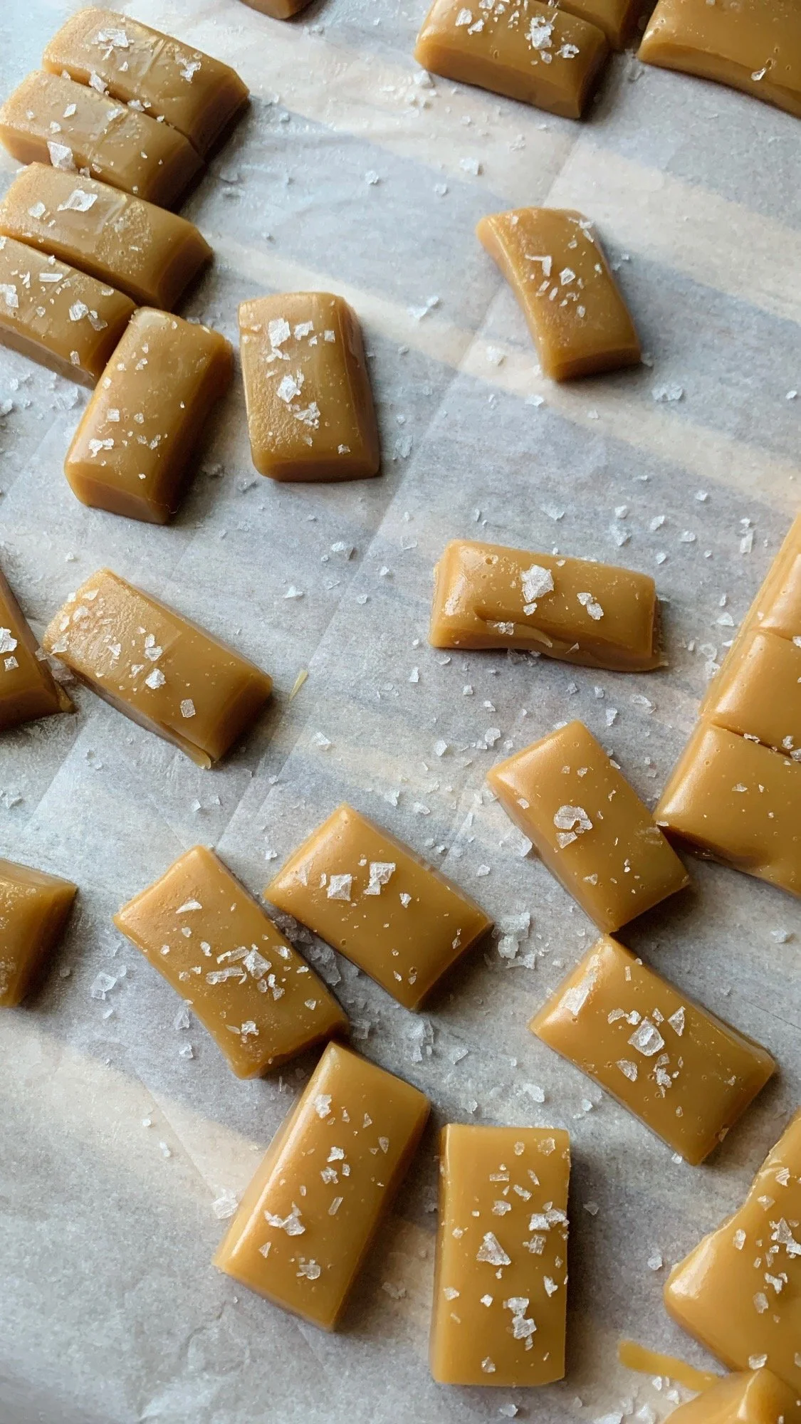 Buttery, chewy, and perfectly soft caramels topped with flaky sea salt.