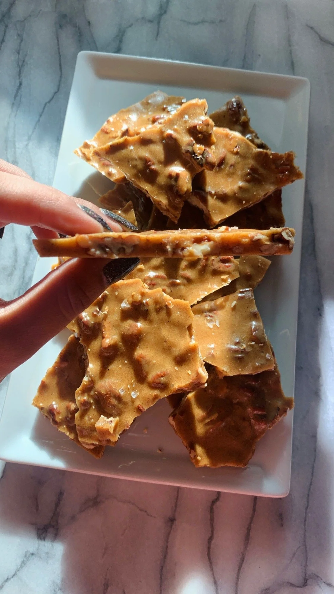 Buttery hard candy with a satisfying crunch, loaded with pecans and warm fall spices.