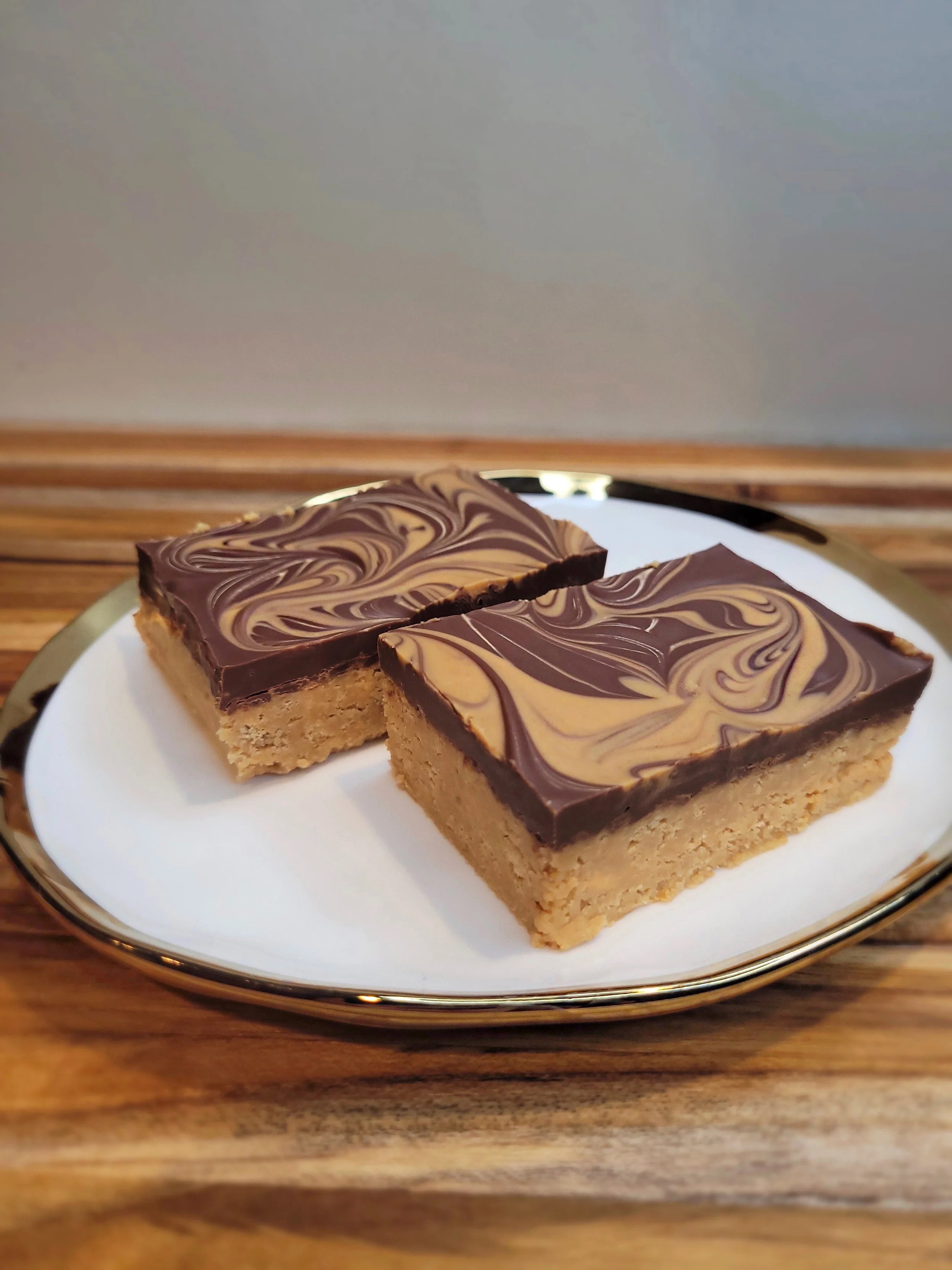 A layer of creamy peanut butter filling loaded with honey graham crackers, topped with a peanut butter chocolate and finished with a peanut butter swirl.